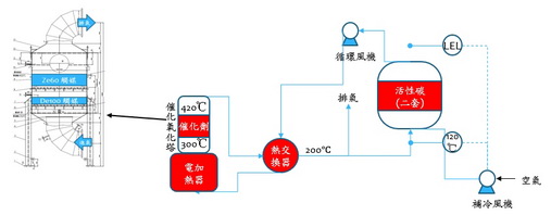 5.活性碳中的 VOCs 利用熱空氣吹出來,達到再生的效果